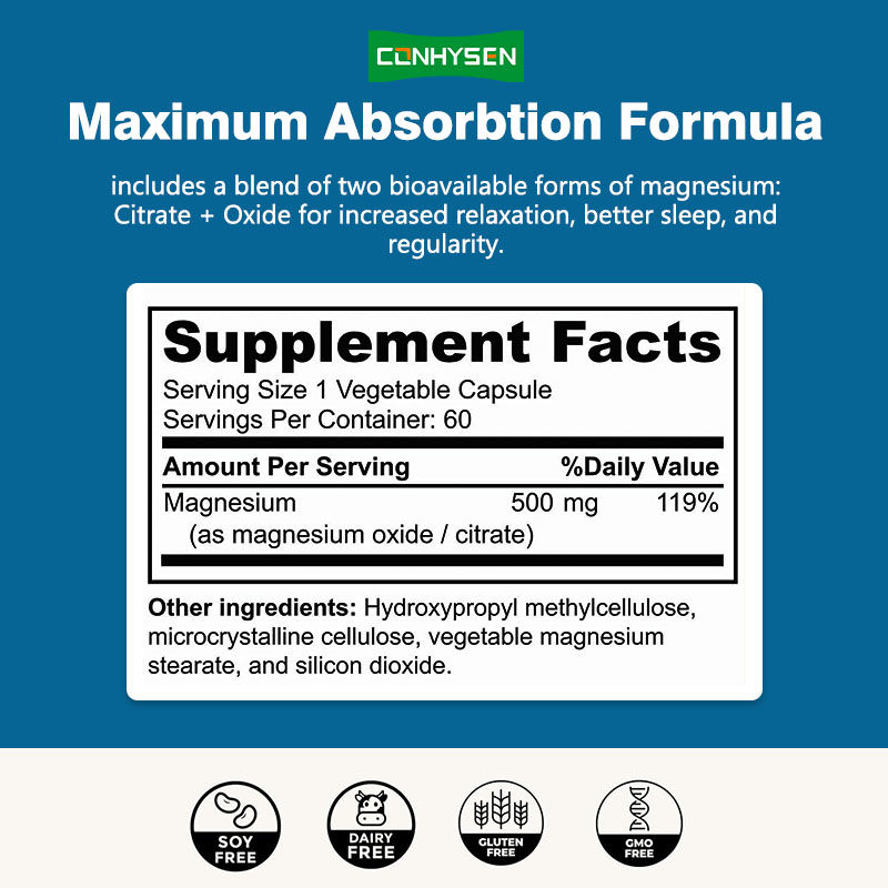 Kapsułki magnezu to suplementy diety składające się głównie z elementów magnezu lub związków magnezu, których celem jest dostarczenie organizmowi niezbędnego magnezu mineralnego.Jako czwarty główny kation w ludzkim cieleMagnez odgrywa kluczową rolę w ponad 300 reakcjach biochemicznych, uczestnicząc w ważnych procesach fizjologicznych, takich jak metabolizm energii, synteza białek i przekazywanie sygnałów nerwowych.Kapsułki magnezu zawierają różne formy soli magnezu, takich jak tlenek magnezu, cytrynian magnezu i glicyna magnezu, w kapsułkach,zapewnienie wygodnego i skutecznego sposobu suplementacji magnezem dla osób, które nie mają wystarczającego spożycia magnezu z powodu monotonnej diety lub specjalnych potrzeb fizjologicznych.