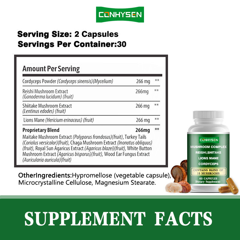 | Główny składnik | Proszek Cordyceps, ekstrakt z grzybów Reishi, ekstrakt z grzybów Shiitake, grzyba lwa | ||