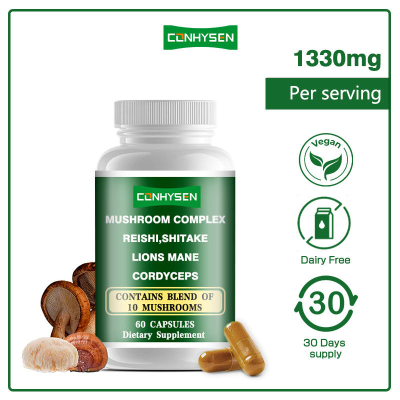 Kapsułki złożone z grzybów to suplement diety, który został naukowo sformułowany i udoskonalony z różnych grzybów funkcjonalnych, takich jak Reishi, Shiitake, miceum Lingzhi i Tremella.Zawiera cenne składniki aktywne, takie jak polisacharydy., terpenoidów, ergotioneiny i minerałów z tych grzybów, działających jako naturalne magazyn zdrowia zapewniający wielowymiarową ochronę zdrowia ludzkiego ciała.