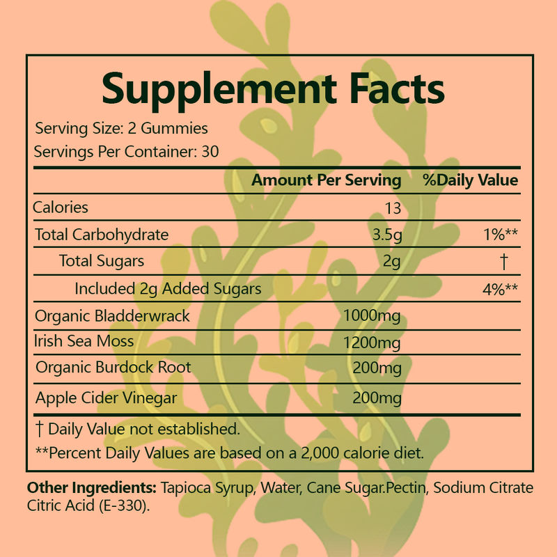 Morszczyn irlandzki, organiczny morszczyn pęcherzykowaty, organiczny korzeń łopianu, ocet jabłkowy