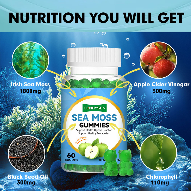 Sprzedaż hurtowa Custom Sea Moss Gummies Apple Taste Wspiera zdrowy metabolizm
