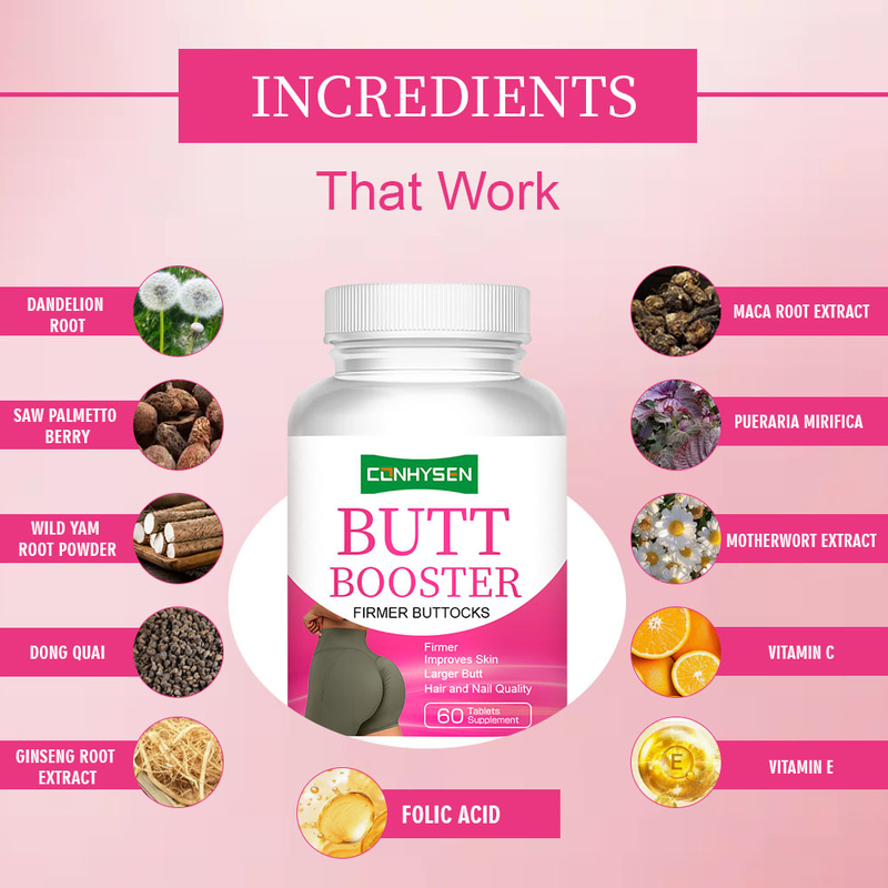 Produkt Butt Booster Tablets firmyGuangdong Kangsheng Pharmaceutical Technology Co., Ltd.zawiera obfite fitoestrogeny i składniki kolagenowe. Może stymulować wzrost i rozmieszczenie komórek tłuszczowych w pośladkach, pomagając w naturalny i bezpieczny sposób zwiększyć objętość pośladków. Jeśli będziesz konsekwentnie je przyjmować, Twoje pośladki staną się bardziej jędrne i zaokrąglone, z bardziej atrakcyjnymi krągłościami.
