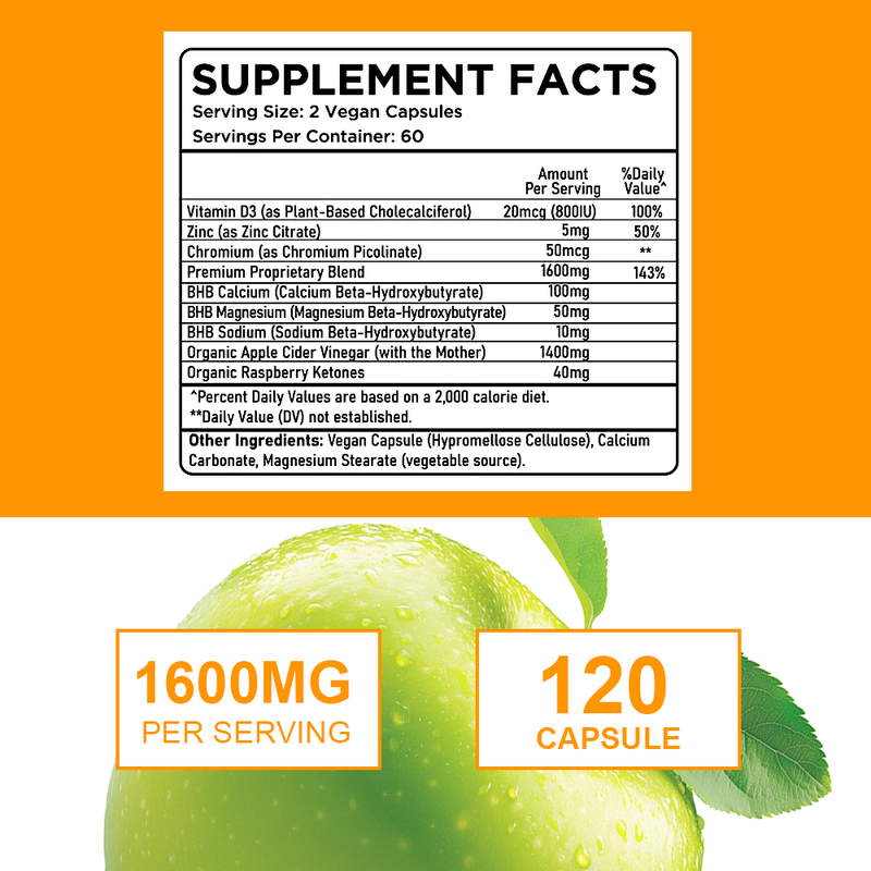 Organiczny Ocet Jabłkowy, Witamina D3, Cynk, Chrom, Zastrzeżona Mieszanka Premium, BHB Wapń, BHB Magnez, BHB Sód, Organiczne Ketony Maliny