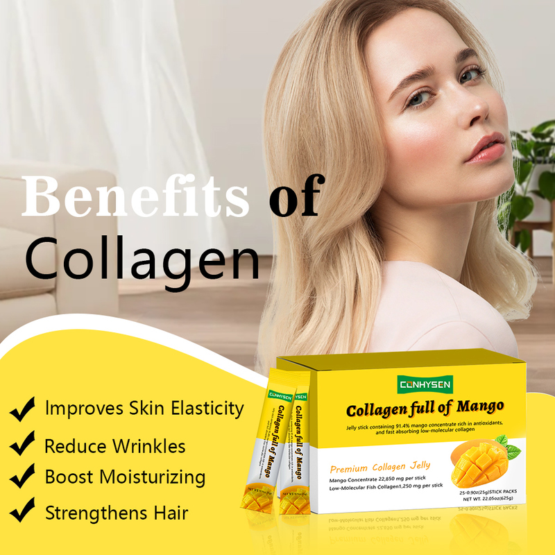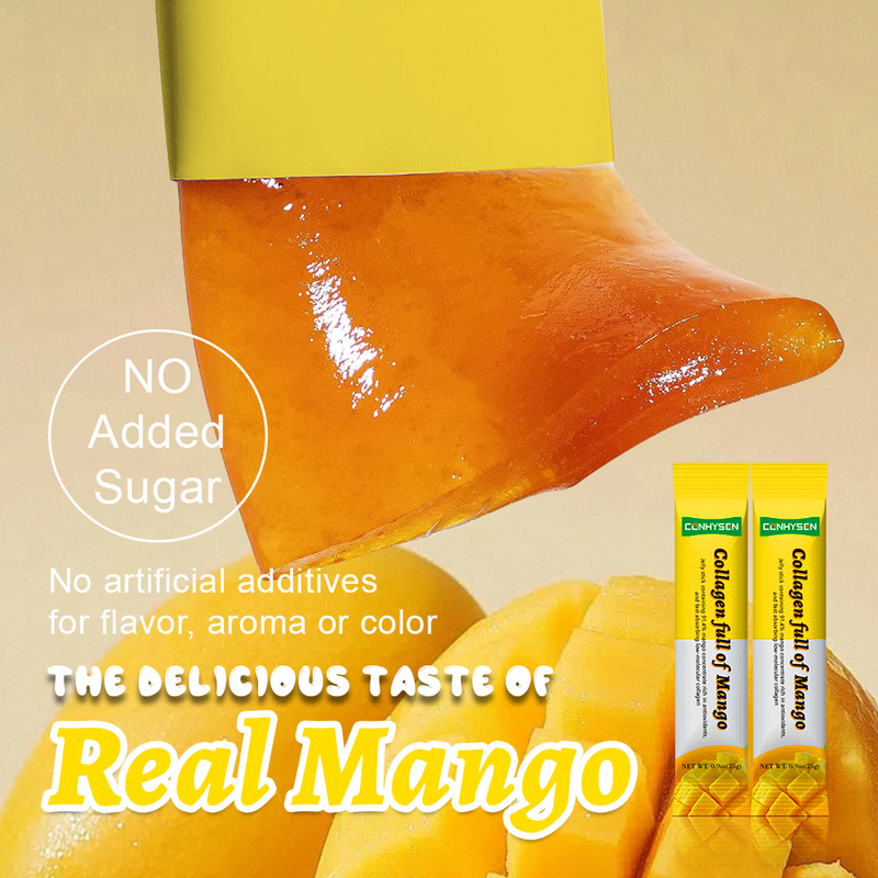 Galaretka kolagenowa z mango poprawia elastyczność i jędrność skóry, z możliwością personalizacji marki